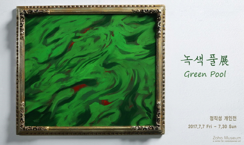 This solo exhibition featuring green paintings by Jeong Zik Seong at Zaha Museum.