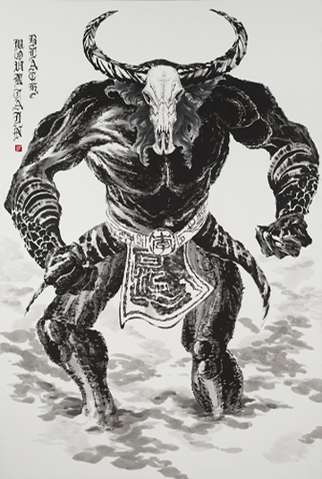 Donghyun Son is an oriental painter by practice and has produced experimental work reinterpreting subjects appearing in modern popular culture as works of East Asian art, using traditional trends, techniques, methods, and distinctive qualities of mediums that are well known and have long been given much weight over East Asian painting history. From his very first solo exhibition Pop-Icon:波狎芽益混 (2006) Son has reproduced popular fictional characters that appear in animation or Hollywood movies using East Asian brush painting techniques. Taking from the values of Transmitting Spirit (傳神寫照) – that believes in capturing a subject’s virtuous and distinguished character and spirit along with his or her physical appearance when creating a portrait – Son paradoxically depicts nonexistent fictional characters so that we may see them, as a way of questioning the traditional subject matter and approach styles to reconstitute them into the perspectives of today. Furthermore, through his serial works Portrait of King (2008), that portray the changing facial appearances and style through time of late pop-star Michael Jackson seated atop the traditional Korean royal throne, and Villain (2011), that introduces major villains of the famous 007 James Bond film series released between the years 1962 and 2002, Son earnestly and meticulously analyzes the value system and trends of popular culture that adjust with the shift of time, using this traditional medium.
