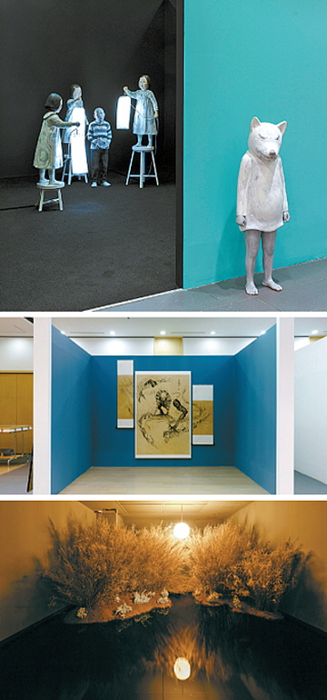 The exhibition on the second floor starts with installation works by Suki Seokyeong Kang, a finalist of the 2013 SongEun Art Award. Then, visitors are led to the sculptures of collapsing houses by Juree Kim, winner of the 2010 Award, and grotesque sculptures by Chun Sung-myung, which may remind viewers of a scene from a dark fairy tale.