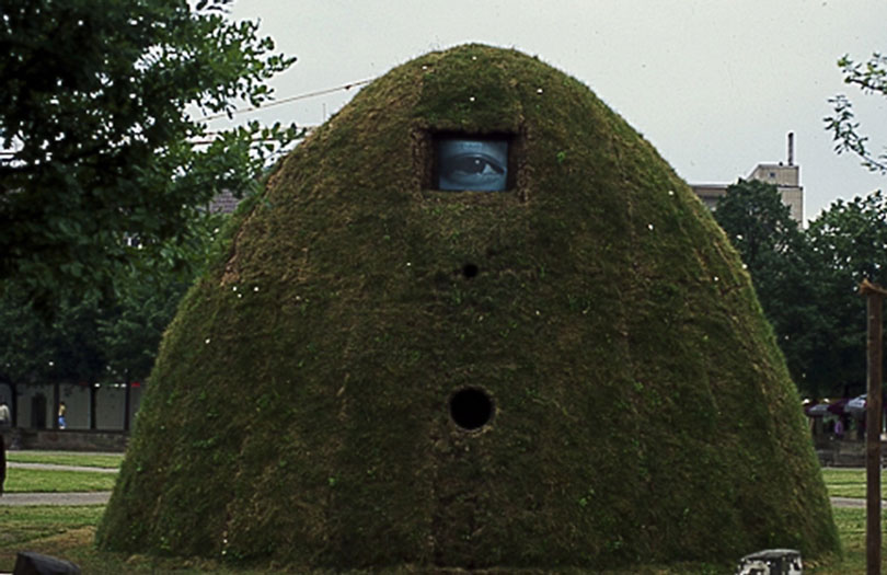 These installations that assemble fictional, imaginary, or surrealistic worlds paralleling reality into a single structure would become a common characteristic among later Korean video artists. This is exemplified by Nah Kyungja’s 〈O.T.〉, an installation from the 1990s that once again created an encounter between the real and imaginary, or the eye in works such as Yook Keun-byung’s 〈Sound of Landscape + Eye for Field=Rendezvous〉 (1992), which is both a symbol of communication between this world and the next and a spiritual nature that monitors history and reality.