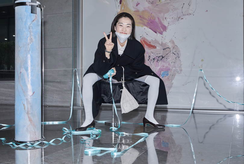 “I see the surface of shining objects and world and I imagine myself falling into them and disappearing. Are they materials or time, they don’t seem to be anything.” The artist begins her work from the desire of wanting to grab light. She manages several identities, including fldjf studio, a semi-virtual studio projected with the concept of ‘reflector’, dancer qhak, WTM decoration & boma, which senses materials through handwork, receptionist R, and 'Sophie.Etulips.Xylang.Co.,' Pak explores the power of mood by using reflection, impression, imagery, sense, and pseudo as main materials.