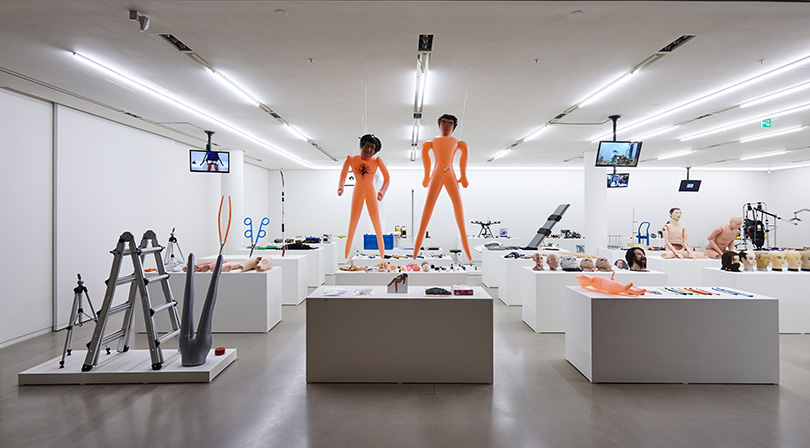 Descending the stairs toward the exhibition hall, I absentmindedly grab a pamphlet printed on B4 paper, and immediately notice my ridiculous mistake. I am holding a menu for the museum café. Putting my embarrassment behind me, I quickly proceed into the exhibition space and pick up another leaflet of the same size. I am pretty sure there will be no more stumbling. For once, the exhibition grounds at Atelier Hermès are completely open, with no makeshift walls whatsoever. Bright fluorescent lights have replaced the usual spotlights, and Jeong Geum-hyung’s “Private Collection” stands on a neat arrangement of pedestals of uniform size. In addition to the mannequins and exercise equipment, there are sex toys, electrical tape and various other objects that all have their own miniature stage. From “7 Ways” (2009) to “Rehab Training” (2015), Jeong’s performances have always left a strong impression on me. “Private Collection,” winner of the 16th Hermès Foundation Missulsang, is sure to rouse powerful memories.