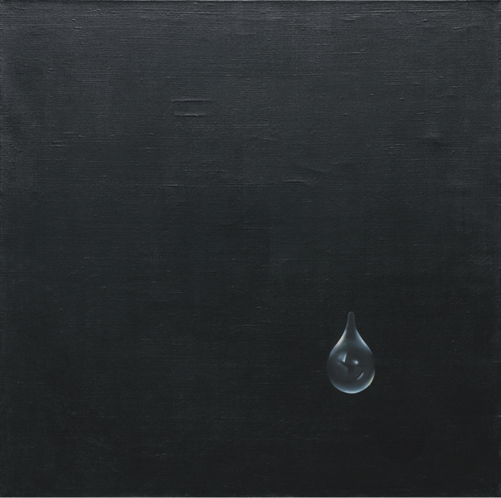 An empty stretch of the gallery demarcates these earlier works from a pair of Kim's inaugural water drop paintings, first shown at Paris' Salon de Mai in 1970. Each featuring a magnified water drop on a stark canvas, the paintings' trompe l' oeil appearances belie a minimalist approach, in which gentle dabs of whites, blues, and greys are used to simulate translucence. The pair is followed by a succession of paintings created through to the early 1980s—some sparse, with others bearing tight clusters of droplets. In 〈Il pleut〉 (1973), tiny water drops slash across the surface of a wood veneer sheet. It directly references a concrete poem published by the avant-garde writer Guillaume Apollinaire in 1916, following his service in World War I. By replicating the poem, Kim paid homage to a Surrealist trailblazer who similarly lived through times of violent upheaval.