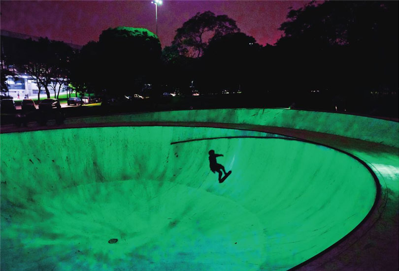 ARROGATION, Mixed Media, 32nd São Paulo Biennial, 2016.0. These three objects give off their own light in the darkness. This is a place and at the same a sculpture. It is also a skateboard park. OTRO is situated on an island in a lake. Delving below the earth’s surface, it creates a space as its ovoid curves form rises and falls. EVERTRO is a sports park in a poor urban neighborhood. Seemingly surging above the surface, it reveals its physical presence. RROGATION is situated in the central park of a big city. ARROGATION burrows below the ground like a diamond mine. Countless “Ousssers” gather here, and a new “Oussser” is born. They amplify their freedom between darkness and light, and then they depart for a different world.