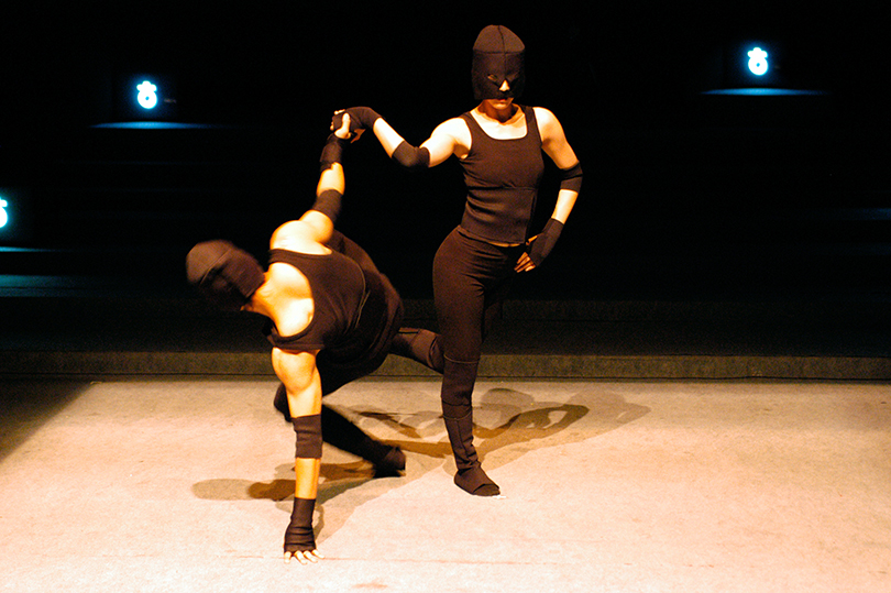 During the 2000s, Park continued to participate in experimental, multimedia theater performances. One of the most notable examples was 〈Cult–robotics〉 (2004), for which she and fellow artists Hyunsuk Seo and Sungmin Hong each wrote one act on the theme of robots and marriage ceremony.13 Moving beyond the personal to enact a truly collaborative experience, Park and her colleagues presented an open, nonlinear narrative within a deconstructed theatrical space that subverted the focused gaze of traditional theater.14 Mixing dance, music, art, and drama, this “total theater” piece wildly satirized the modern link between marriage and capitalism, with male and female dancers connecting like conjoined twins while numbered lottery balls popped out of a pregnant woman figurine’s groin. Unlike traditional performances, in which the viewers must passively observe what the artists have chosen to show, 〈Cult–robotics〉 presented the audience with an infinite array of spectatorial possibilities, thus ensuring that each person would have a unique subjective experience. This capacity is the primary reason that Hwa Young Park has continuously reached beyond video into theatrical art.