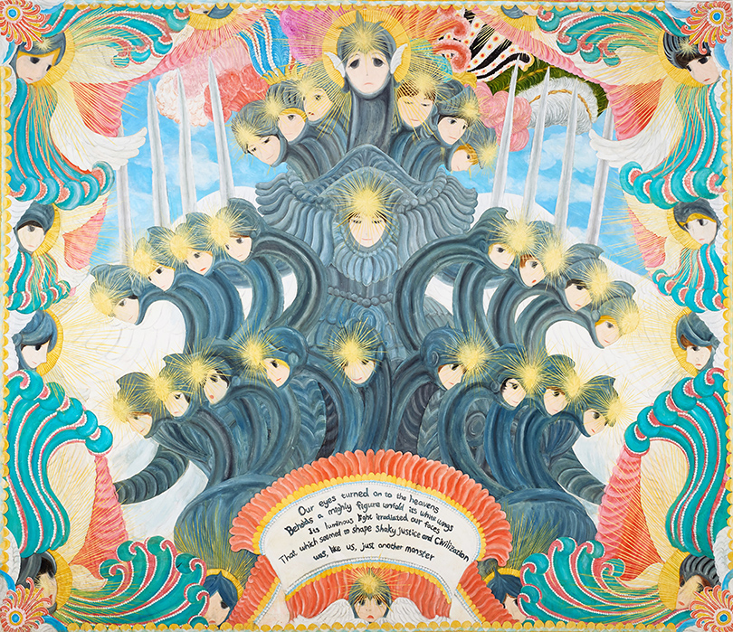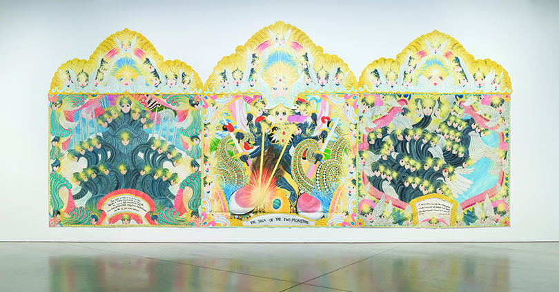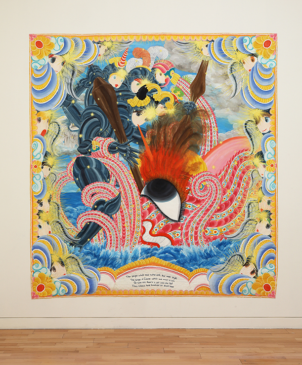 〈The Saga of the Two Monsters〉, 2019, Oil, cotton collage on Cotton, 420x906cm(dimensions variable). Image Courtesy of the Artist