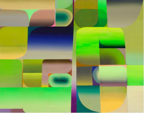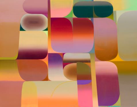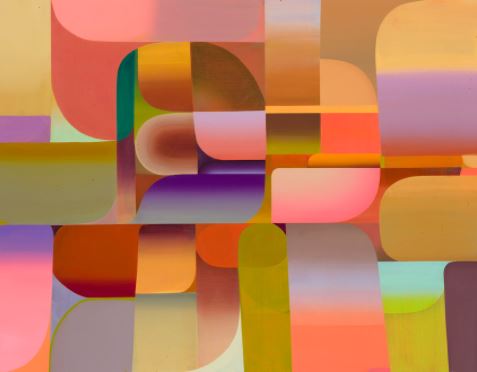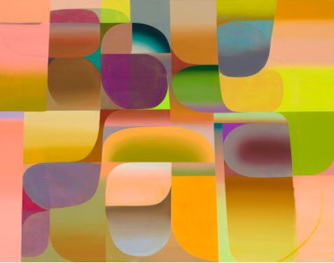 From this process emerges the artist’s psychological flow of accumulated visual depth concentrated with rhythmic intricacies of color.