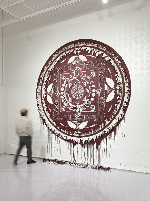 〈Cerise barrier〉, 2020, Cutting on painted wall paper, 600x400cm