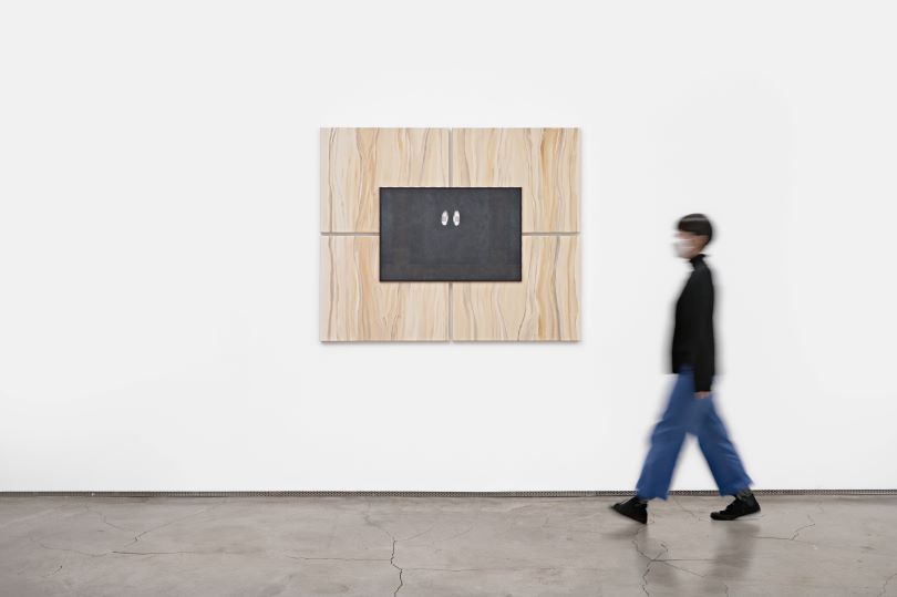 〈Moveable entrance〉, 2020, acrylic on birch plywood, 60x90x8cm. 〈2020 Wall system for Black square〉, 2020, acrylic on birch plywood, 220x272x8cm. courtesy of the artist.