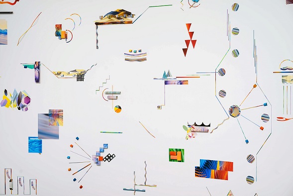 “I imagine that there is a ball. I keep paving the paths that would allow the ball to bounce in any direction.” Quoted from the artist’s int..
