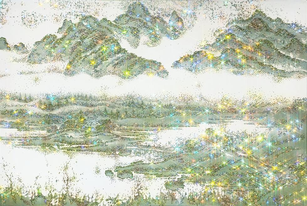Traditional Korean landscapes encrusted with Swarovski crystals on view in New York