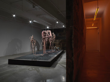 Mire Lee, 〈Hysteria, Elegance, Catharsis; words were never enough〉, 2018. Motor, silicone and silicone oil on plastics, steel lines, other ..