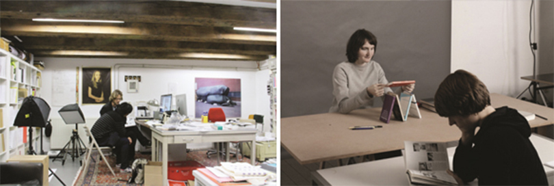 왼쪽) 필자가 로마 출판사를 방문해 로허 빌렘과 이야기를 나누는 모습프랑스에서 서점은 ‘librairie’로 불린다. 영어의 ‘라이브러리’에 익숙한 사람은 이 단어를 도서관과 혼동하기 쉽다. 사전을 찾아보면 인쇄와 판매까지 병행하는 출판업자의 뜻도 있다. 파리의 서점 역시 대부분 미술관이나 갤러리에 부속돼 있다. 자체적으로 출판한 도서를 다량 보유하고 있기 때문에 기관 서점을 방문하는 것이 가장 확실하게 전문 분야의 책을 구할 수 있는 방법이다. 퐁피두센터나 팔레드도쿄 같은 큰 기관은 차치하고, 섹션7북스(Section7Books) 같은 작은 독립 서점도 자체적인 출판 활동을 펼치고 있다. 섹션7북스는 갤러리인 카스틸로/코랄레스(castillo/corrales)와 함께 공간을 사용한다. 출판과 책 판매, 전시 등의 활동을 함께 한다. 섹션7북스도 2013년 “타이포잔치“에 소개한 서점으로 이번 방문에서 많은 도움을 받을 수 있었다. 섹션7북스는 책의 기획과 제작, 판매, 유통이 하나의 기관에서 이뤄진다. 한국보다 상대적으로 유통 비용이 높은 유럽에서는 이런 단일 프로세스로 생산과 유통을 통제하는 것이 효율적이다. 다수의 책이 서점을 방문하는 기획자나 예술가와의 협업으로 이뤄지므로 네트워크를 유지하고 발전시키는 큰 역할을 한다.
