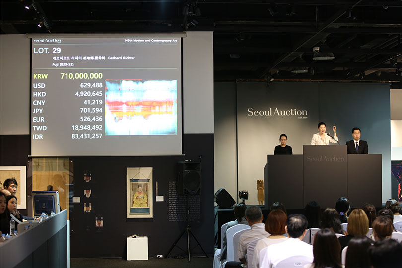 ‘동시대미술시장리포트 2017’이 집계한 2016년 하반기부터 2017년 상반기까지의 동시대미술품 경매총액은 미국이 6억9050만 달러(약 7906억 원)로 43.8%를, 중국이 3억6960만 달러(약 4232억 원)로 23.5%를, 영국이 3억4840만 달러(약 3989억 원)로 22.1%를 차지했다. 미국, 중국, 영국이 89.4%를 차지하며 세 국가가 독식했다고 봐도 무방하다. 4위는 프랑스가 3791만 달러로 2.4%를, 5위는 독일이 1536만 달러로 1%를, 6위는 일본이 999만 달러로 0.6%를 차지했고, 이탈리아, 호주에 이어 한국이 9위를 차지하며 689만 달러(약 79억 원)로 0.4%를 차지했다.8)