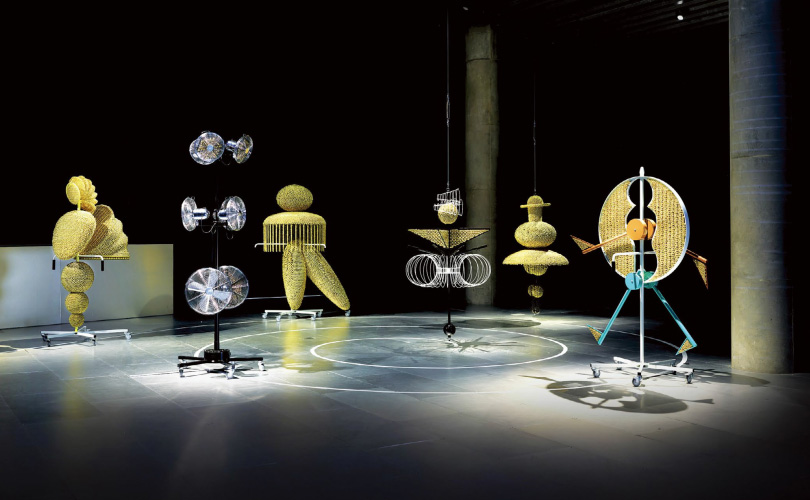 〈상자에 가둔 발레〉(2013, 2015)는 그러한 딜레마에 공격적으로 순응한 결과였다. 화이트큐브가 아니게 된 21세기의 미술관 전시 공간을 능동적으로 재규정하려는 목적에서 제작된 이 작업의 참조 대상은, 바우하우스의 실패였다. 오스카 슐레머의 대표작 〈삼부작 발레〉의 인물들을 사운드-조각으로 재해석한 작가는, 조각을 통해 나선형의 동세-역사의 진보를 상징하는-를 다시 이야기한다.