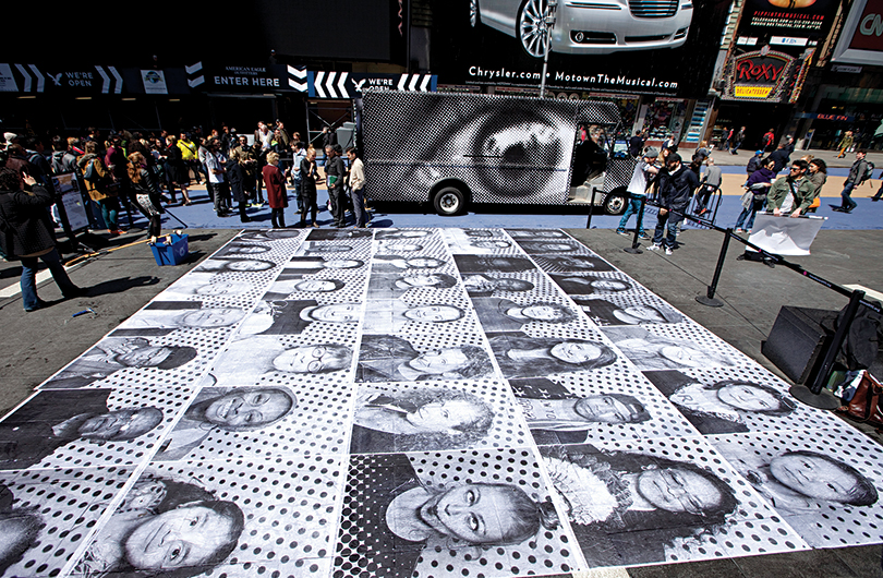 일시적 프로젝트 중에는 관람객이 함께 참여함으로 프로젝트가 완성되는 경우가 유독 많다. 미드타운 한복판에 자리한 타임스퀘어 아츠(Time Square Arts)의 프로젝트 중에서도 2013년 프랑스 출신의 예술가 JR의 〈인사이드 아웃(Inside Out)〉프로젝트는 한 장소에서 이루어지는 관람객의 체험 자체가 작품을 완성한다. 짧은 기간 동안 타임스퀘어를 배경으로 한 시민 참여형 퍼포먼스이다. 이 작업은 버스를 개조한 포토 부스를 설치해 누구나 자신의 얼굴 사진을 찍으며 작업에 참여하도록 했고 참여자들의 얼굴이 포스터 사이즈로 프린트되어 더피 스퀘어 바닥을 가득 채웠다. 타임스퀘어 특성상 보행자가 워낙 많은 곳이다 보니 무엇인가를 설치하는 일이 쉬운 일이 아니기에 대부분의 전시 작업들은 모두 외부에서 제작해 가져다 놓을 수 있도록 하는 방식을 택한다.