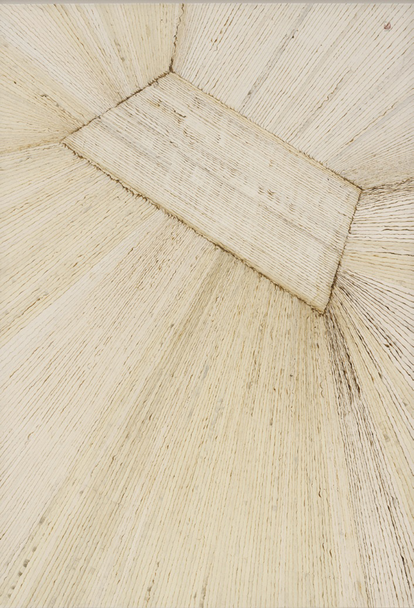 데이비드 자페 김민정 작품의 정수는 세심한 패턴과 의도적인 배치다. 그의 작업에 나타난 종이의 층은 진흙으로 집을 칠하거나 벽에 여러 겹 도배를 해서 수리를 하는 방법에서 유래했다. 그의 작업은 전통적인 종이공예의 형식을 띠면서도 그 자체만의 놀라운 미적 측면을 지니고 있다. 우산 모양의 패턴이 정확히 짜 맞춰진 <길>은 완벽하게 조절된 간격과 스케일로, 종이작업에 대한 작가의 관념을 여실히 드러낸다. <방>의 선의 배치는 좀 더 미묘하다. 불에 그을린 종이의 가장자리는 나무의 질감을 모방하면서도, 이 수많은 종이 선들은 여러 소실점을 향해 합쳐진다. 어쩌면 이러한 평가는 한국의 내재적 양식을 서구의 관점으로 비틀어서 본 것일 수 있다. 작가의 예술관을 직접적으로 대면할 순 없더라도, 그의 작품을 더욱 예술적으로 만드는 결정적인 요소로 세심하고 정확한 선의 배치를 빼놓을 수 없다.