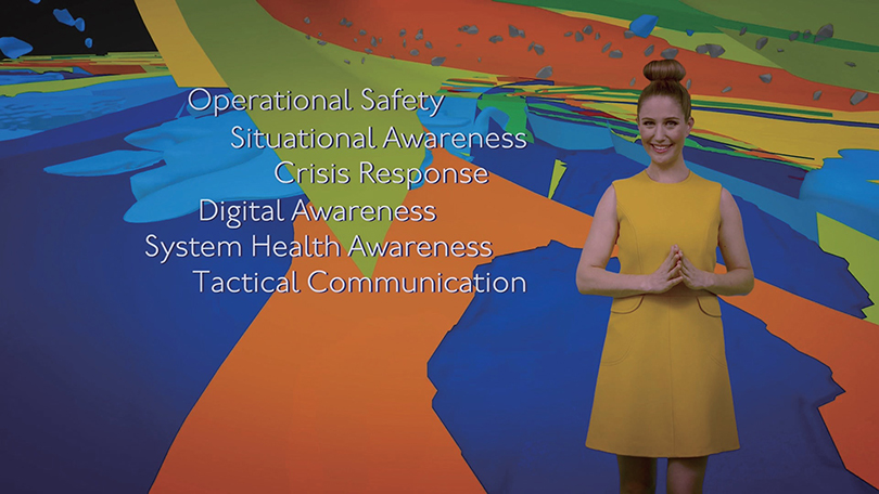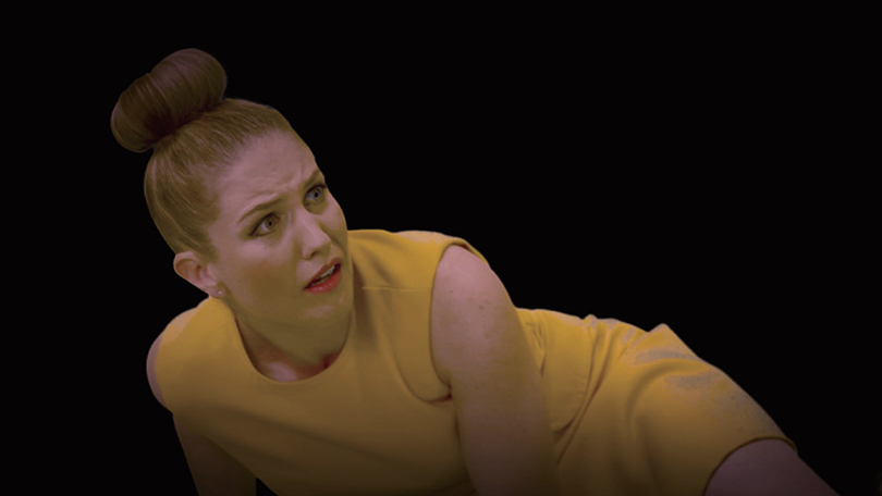 김아영: 노란색 옷을 입은 모델이 이주 상품을 판촉하는 장면, 페트라가 상담을 받고 이주하는 장면, 3D 애니메이션으로 만든 다공성 계곡의 지층 장면이 자세한 설명 없이 갑자기 튀어나오는 과정이 영상에 반복된다. 완벽한 내러티브를 보여주기보다는 일부러 플롯에 구멍을 만들어 보는 이가 스스로 상상해 퍼즐을 맞추게 하고 싶었다. 모델의 과장된 표정과 행동은 드라마틱한 파국을 강조하기 위해서다. 서스펜스를 느끼게 하고 싶었다. 우리의 삶이 그러하니까.
