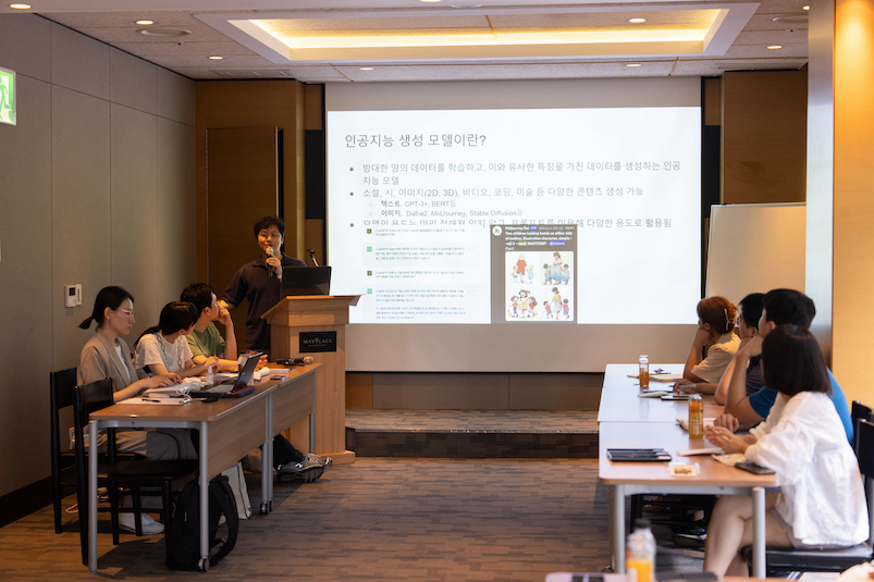 영국 서펜타인 미술관의 에바 제거(Eva Jager), 미국 구겐하임 미술관의 노암 세갈(Noam Segal), 그리고 한국의 이완 작가와 머리를 맞대고 AI 효과(A..