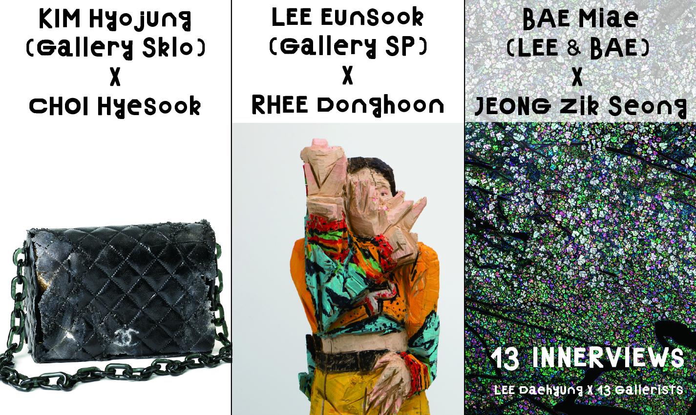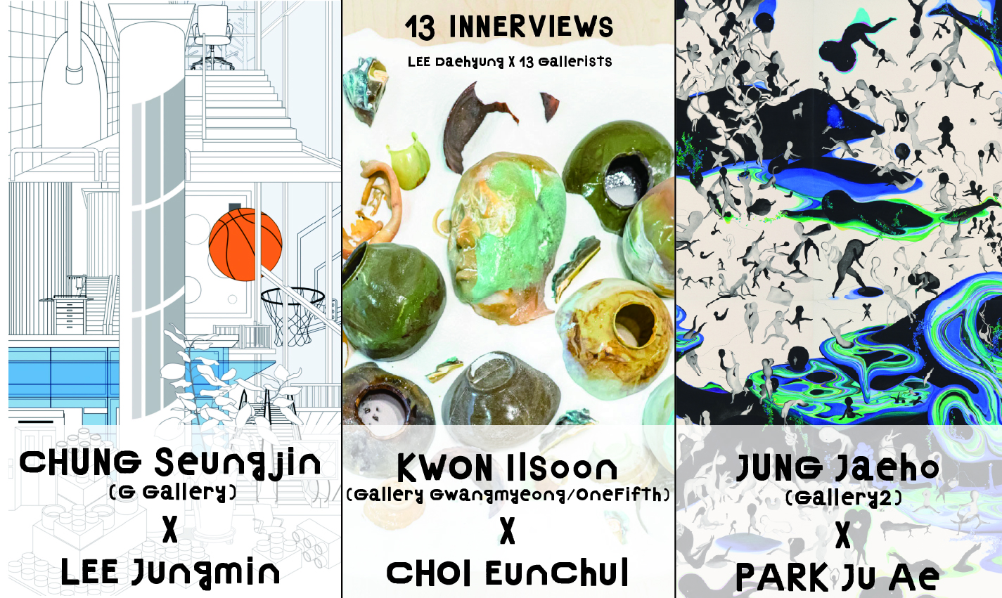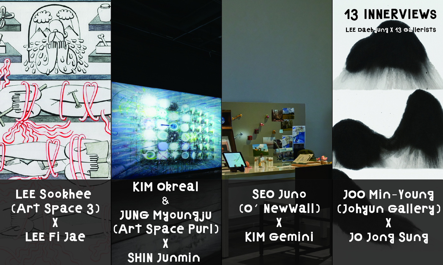 데이터기반 숫자에 의존한 상업적인 접근이 아닌, 예술가들 하나하나 다양한 철학적, 인문학적 생각의 뿌리, 그리고 그것들이 구체화되는 과정 역시 너무나 중요하다는 사실에 모두 공감했다. 이대형 큐레이터는 갤러리스트들의 마인드 맵을 추출하여 그들의 통찰력과 철학적 사고를 생생하게 묘사한다. 그렇게 해서 완성한 “13개의 이너뷰”는 단순한 인터뷰 시리즈를 넘어서, 우리 시대에 공명하는 핵심 신념과 예술적 가치를 함께 추구하는 일종의 여정이다. 이번 인터뷰를 통해 도출한 13명 갤러리스트의 비전과 작가관을 통해 보다 많은 사람들이 보다 쉽게 현대 미술 작가들의 철학적, 인문학적 고민을 이해하고 경험할 수 있기를 희망한다.