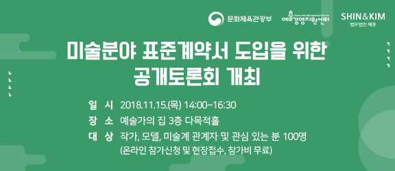 문화체육관광부와 (재)예술경영지원센터, 법무법인 세종, ‘미술 분야 표준계약서 도입을 위한 토론회’ 개최