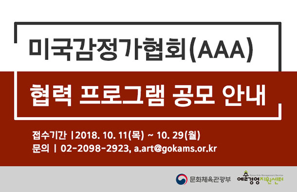 (재)예술경영지원센터와 미국감정가협회(AAA) 협력 프로그램 ‘2018 미술품 감정인력 양성지원’ 공모
